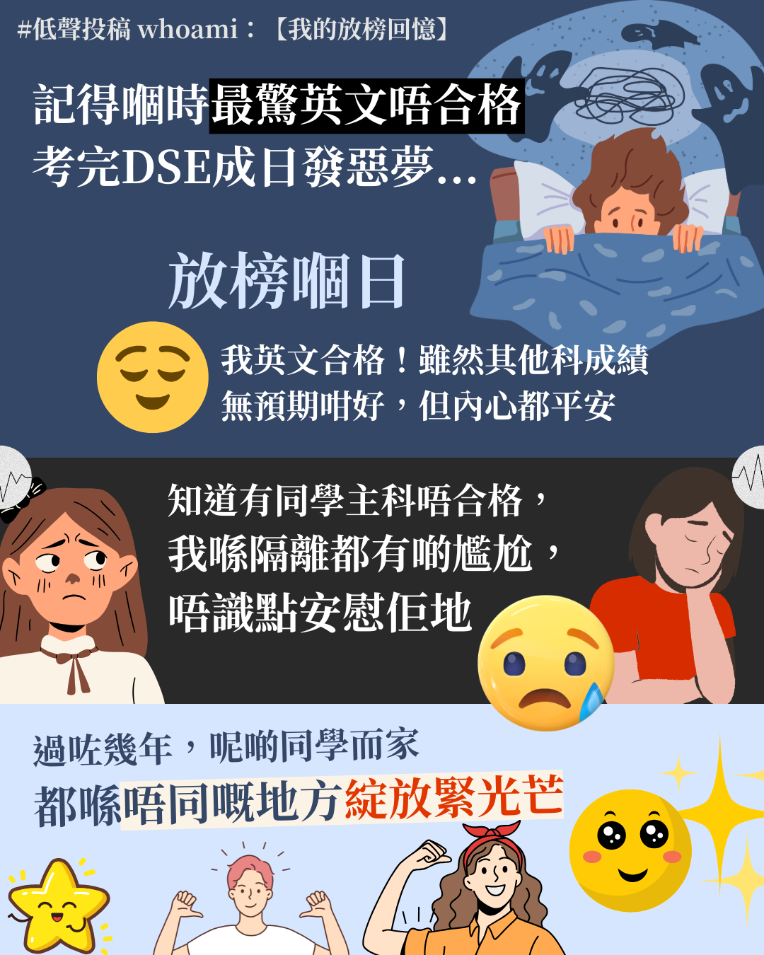 而家過咗幾年,我卻見到呢啲同學都喺唔同嘅地方綻放緊佢哋嘅光芒:有一部份人已經成功入讀「八大」,亦都有部份人從自己嘅興趣入手,從事了佢哋鍾意嘅行業,好似化妝、運動甚至拍片等等。喺呢幾年入面,我真係發現「條條大路通羅馬」,有人好似要兜多一兩個彎,但最後都去到佢哋想去嘅地方。所以DSE放榜同學仔,無論你今日個分係點,都唔好放棄,因為原來點都有方法去行自己嘅路!