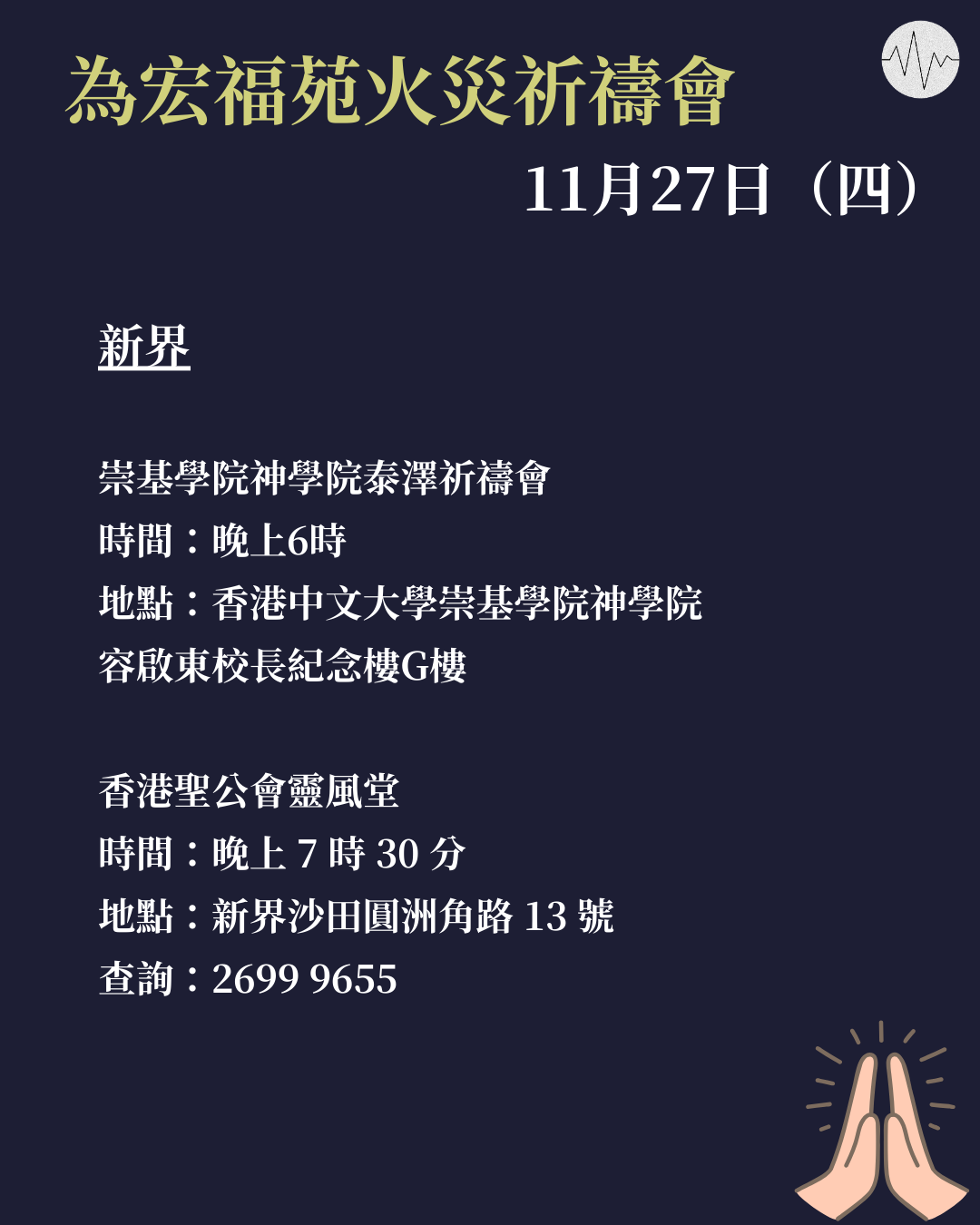 各區教會為大埔宏福苑火災禱告