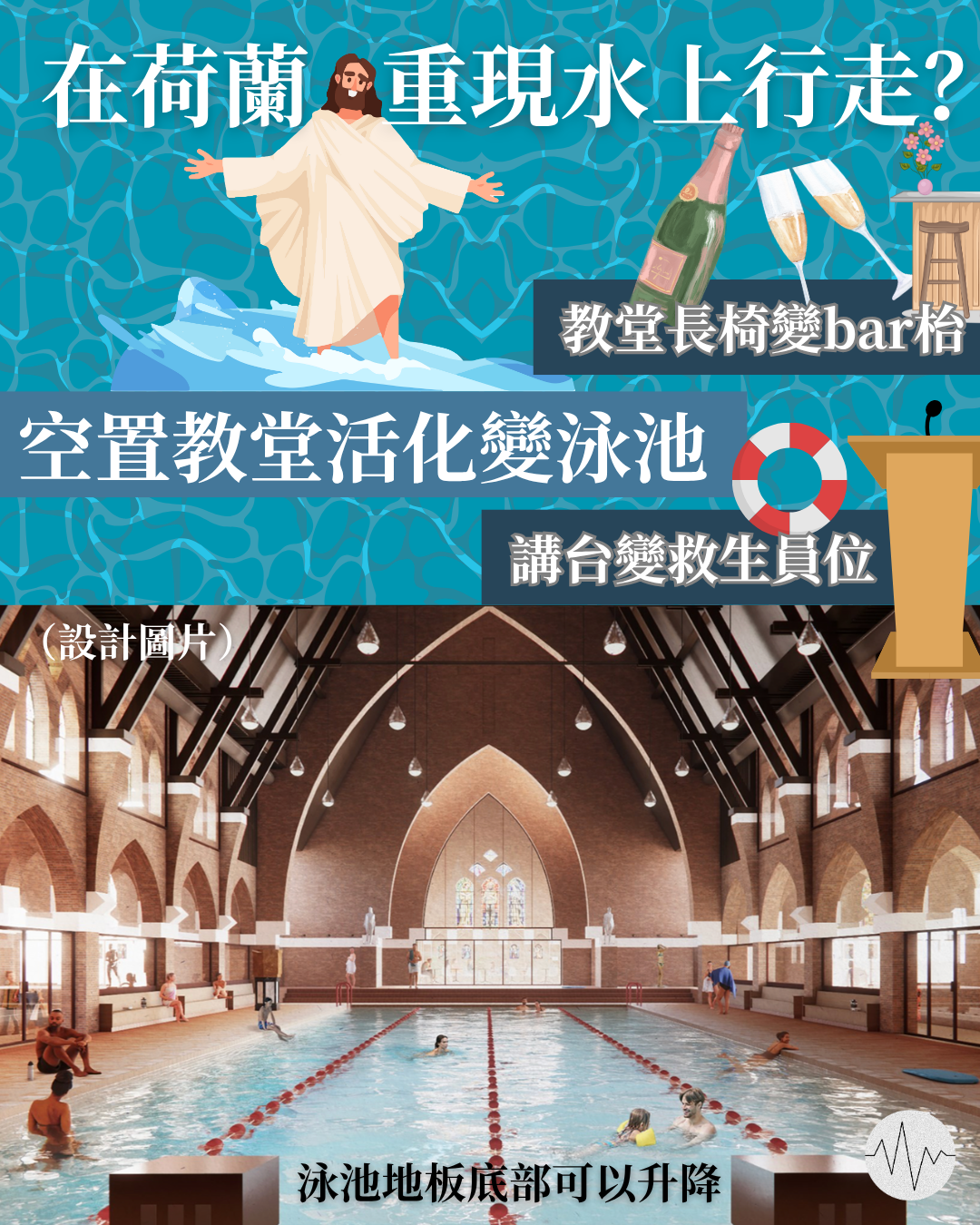 荷蘭空置教堂活化保育成泳池 遊人可體驗水上行走