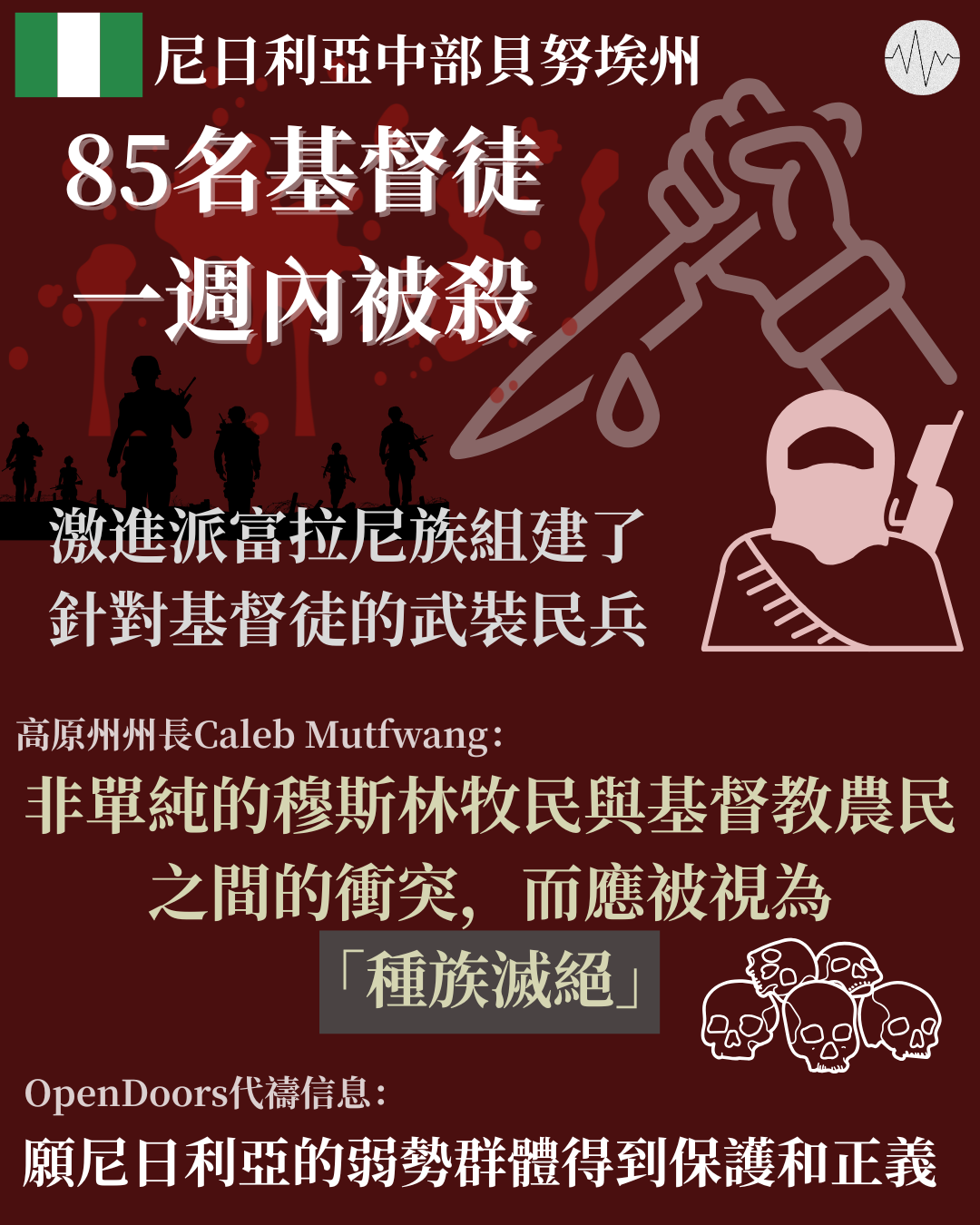 尼日利亞中部貝努埃州一週內85名基督徒被殺