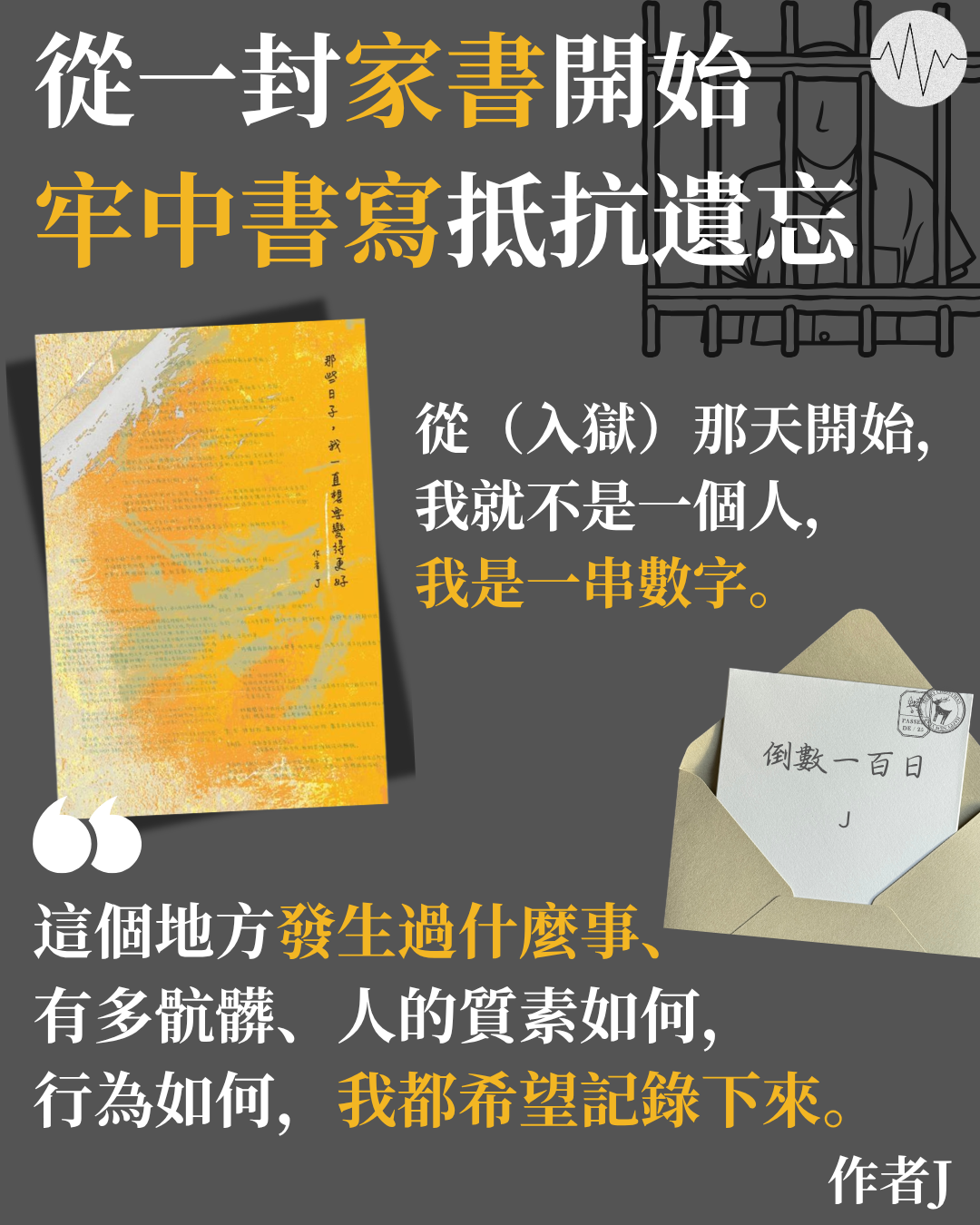 被控暴動入獄,在牆內如何渡日?《那些日子,我一直想要變得更好》的作者 J(化名)2022年入獄,刑期接近三年。當人生被一紙判決推入鐵窗,他在最不自由的地方,學會用文字為自己打開一扇窗,替那些不被看見的日常作證,靠著一本又一本的書、一封又一封的信,慢慢練習把世界寫清楚,也把自己看清楚。
