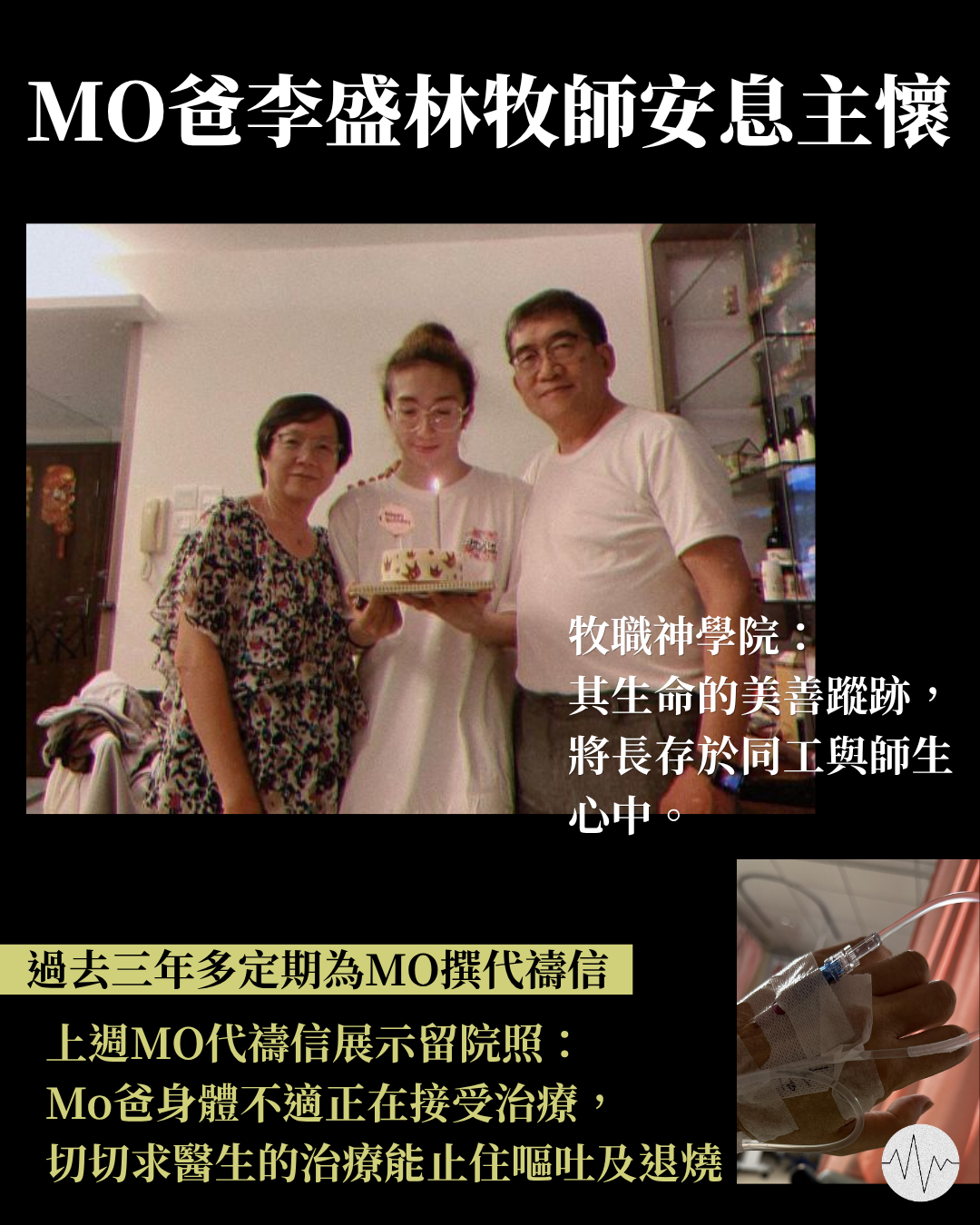 近年為兒子李啟言(Mo)的復康不斷奔走、定期為其撰寫代禱信的李盛林牧師於今日(25日)安息主懷。